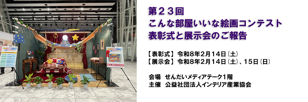 2026年2月14日・15日の2日間、せんだいメディアテークにて公益社団法人インテリア産業協会主催第23回「こんな部屋いいな絵画コンテスト」を開催いたしました。 今年は112校の小学生の皆さんから、計1,099枚もの […]